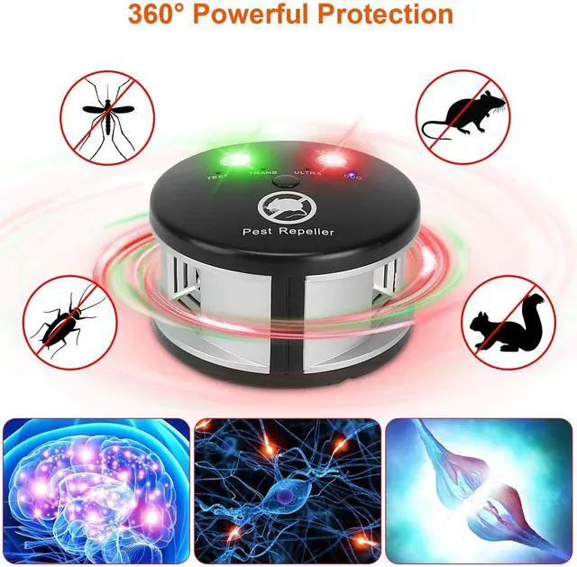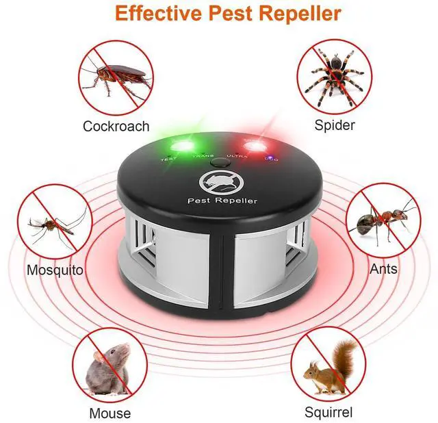 Effective Pest Repeller:Designed with ultrasonic transducer and dual ultrasonic speakers,the repeller can emit ultrasonic sound at frequency of 100Hz-65kHz,perfect for chasing rats,mice,roaches,fleas,spiders,mosquitoes,ants and most of the other common pests.