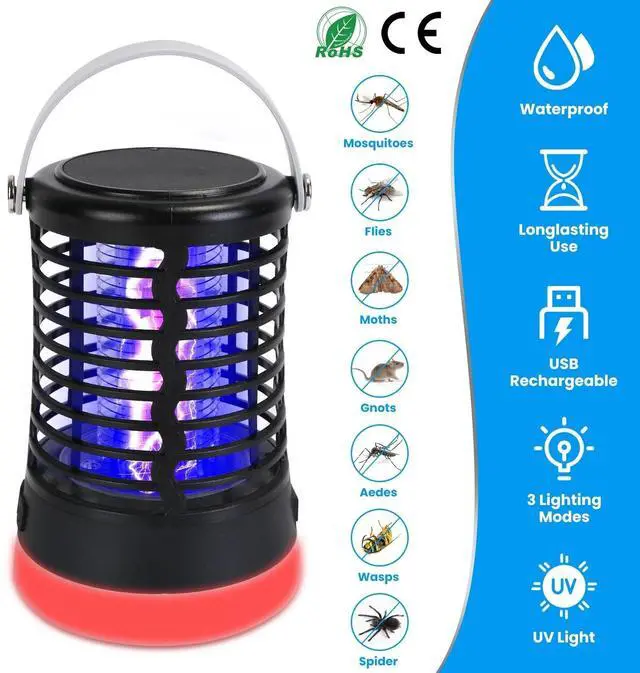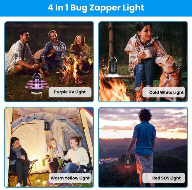 3 Lighting Modes:Apart from UV light,the insect killer lamp also has 3 lighting modes,including cold white light,warm yellow light and red SOS light. The bug repellent light can be used for desktop or hanging with its inbuilt handle. Waterproof and suitable for both indoor and outdoor activities,such as camping,hiking,fishing,climbing,reading etc..