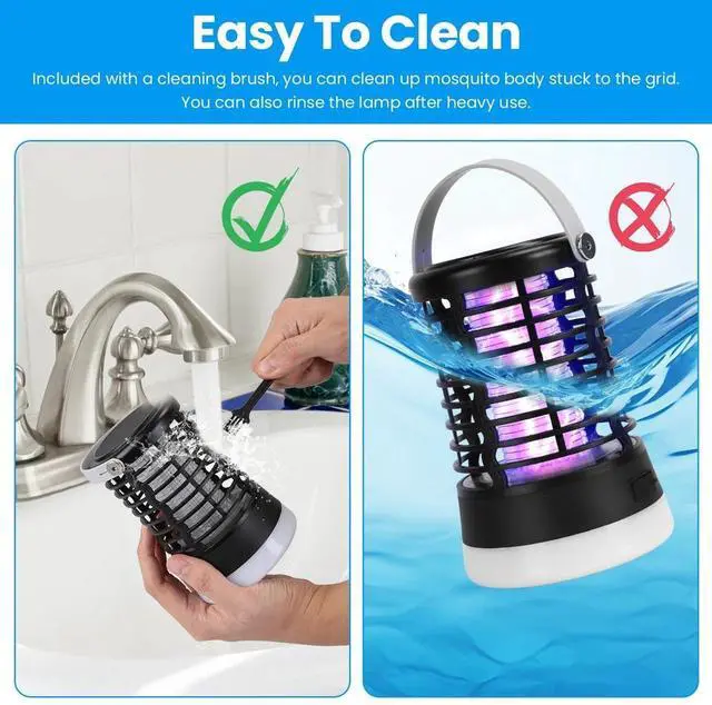Easy To Clean:Included with a cleaning brush,you can clean up mosquito body stuck to the grid of the battery powered bug zapper. Please remember to periodically discard the dead mosquitoes.