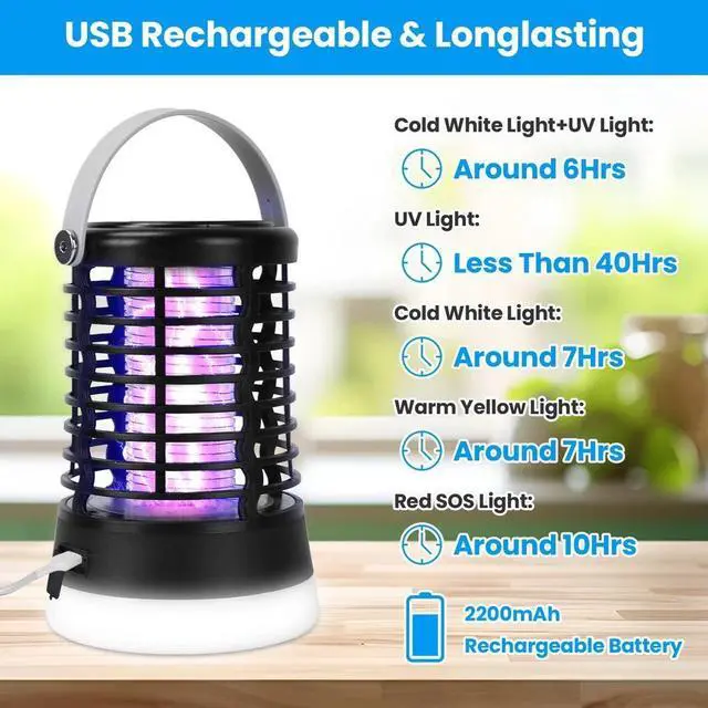 Rechargeable & Longlasting:Featured with a Type-C USB cable and 2200mAh rechargeable battery,our bug zapper light keeps standby for 40 hours after 2-3 hours fast charging.