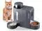 Two-in-one Novel Design-Integrated gravity automatic cat dog food feeder and water dispenser set (food feeder * 1, water dispenser * 1). The High-quality PP material and stainless steel bowl make it more strong. The feeding of stainless steel bowls is healthier for your pets. More practical, more convenient, and suitable for small and medium-sized dogs or cats. (Easily feed two pets at once)
