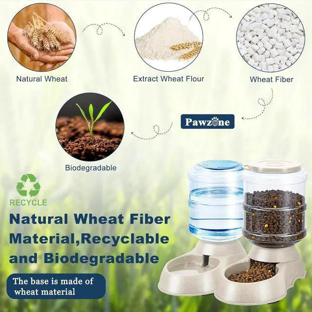 MATERIAL OF PET WATER DISPENSER: Gravity Dog feeder Made of safe, natural food grade wheat material. Easy to move, continuous cat feeder can be used anywhere