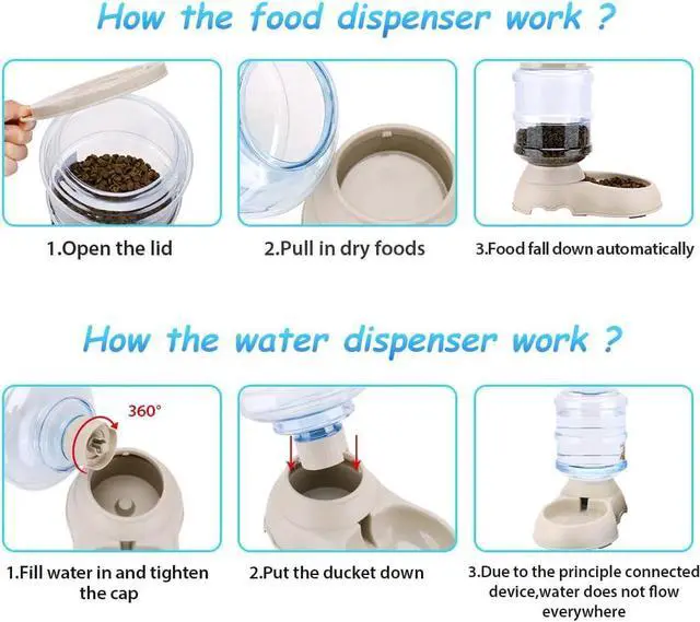 AUTOMATIC CAT FEEDER SET: Cat food dispenser dry food as pets empty the bowl, prolonging time between refills. Side cut-out handles along base for easy lifting; non-skid rubber feet, deal for cats or dogs in single- or multiple-pet homes
