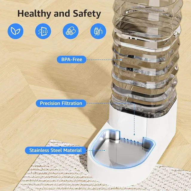 Friendly - Upgraded DesignThe automatic dog waterer is designed with a stable, non-slip base that prevents pets from knocking them over. The depth of the water bowl is optimized to suit the pets drinking behavior, preventing splashing and enhancing the overall drinking experience.