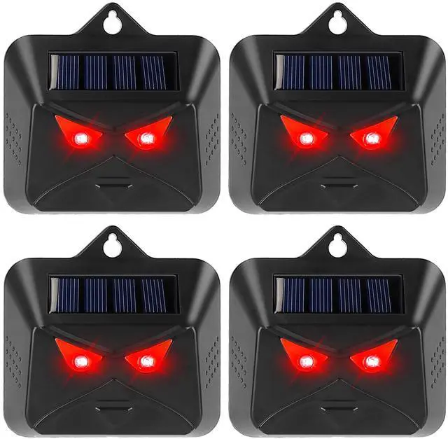 Our animal repeller is designed to drive animals at night by flashing red light. It is similar to flickering flames to warn intruders stay away from the protected areas. Powered by solar energy, it can charge at day and work at night automatically. It\'s recommended to mount the unit depending on the eye height of the predator. For best results, mount the 4 units facing in different directions to drive away predators.