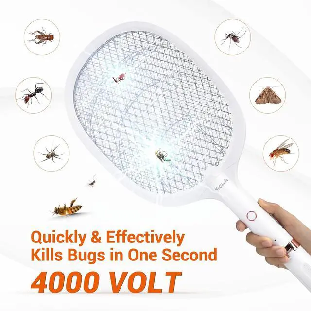 Fast and Effective: Equipped with a powerful 4000-volt grid, our electric fly zapper delivers a single shock to eliminate bugs. This mosquito swatter zapper also includes 5 UV lights that emit 360-400NM wavelengths to attract and kill mosquitoes and flies for more efficient results.