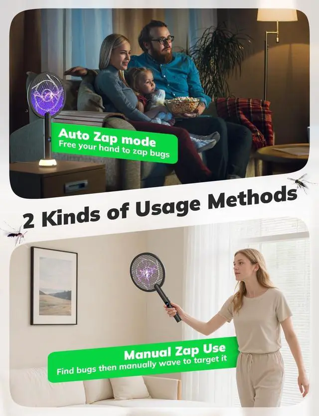 ( Efficient Zapping & Attracting 360nm Attractant light) YISSVIC fly swatter electric efficiently catches everything that will drive you crazy... house flies, gnats, flies, moths, anything that is attracted to light