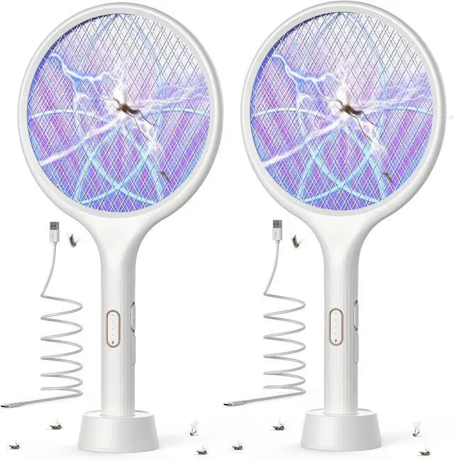 ( Convenient Auto Zap Mode ) Turn YISSVIC mosquito swatter on, sit it on the base. The bug light of electric fly swatter racket will attract the pests and fry them to a crisp