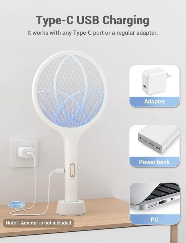 ( Faster Charging and Longer 59" Power Cord ) The expanded charging cable of YISSVIC fly killer indoor no longer limits its using space. Rechargeable battery is also environmental friendly and cuts your budget