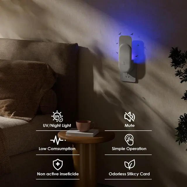 Easy to Use Includes 5 Replaceable Glue BoardsPlug and play designjust insert into any standard outlet. The package includes 1 white fly trap device and 5 strong glue cards, ensuring long-lasting protection. A reliable indoor bug zapper alternative for a cleaner, bug-free home.