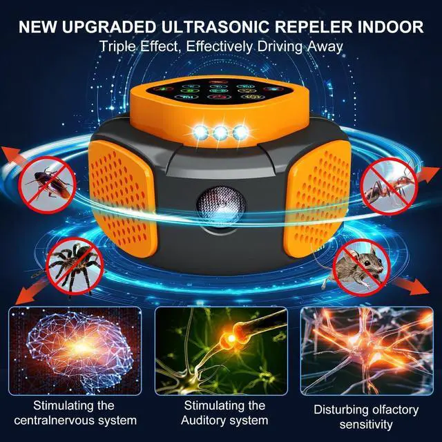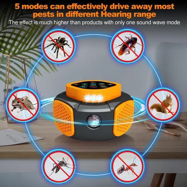 2026 Smart Frequency Conversion (15kHz75kHz) Helps Reduce Pest ActivityUpgraded in 2026 with intelligent frequency conversion and dual-band alternating sound waves, covering a wide range of 15kHz75kHz to help discourage common household pests such as mice/rodents, roaches, ants, spiders and more. Multi-frequency switching is designed to reduce adaptation and support more consistent performance in different rooms.