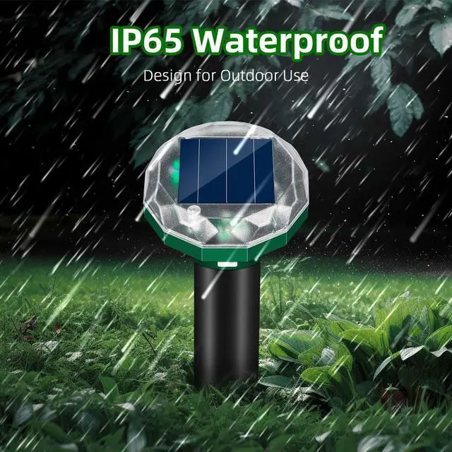 IP65 Waterproof & Solar Powered: Built for durability, this solar mole repellent ultrasonic system features high-efficiency panels and UV-resistant housing. The IP65 waterproof rating ensures your vole repellent outdoor solution stands up to rain, snow, and sun. Enjoy uninterrupted, energy-saving performance with these reliable solar groundhog repellent stakes.