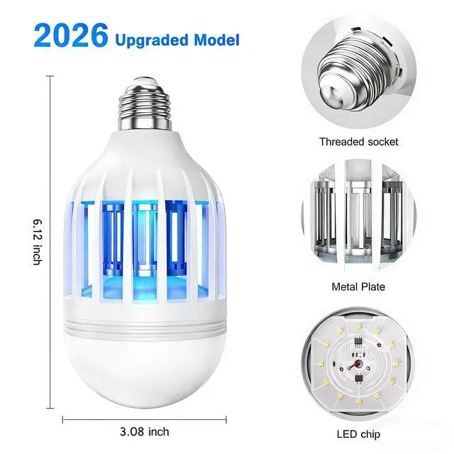Bug Zapper Light Bulb, 2 in 1 Mosquitoes Killer Lamp Led Electronic Insect & Fly Killer, Porch Light for Entryway, Doorway, Corridor, Balcony and Patio (White)