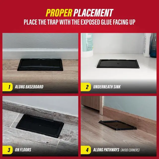 These glue trays utilize our proprietary glue to trap rodents. These disposable mice traps are designed for easy stacking and even work in cool, moist areas for maximum efficiency. For best use, place the rat & mouse glue trap along pathways every 4-6 ft while avoiding corners.