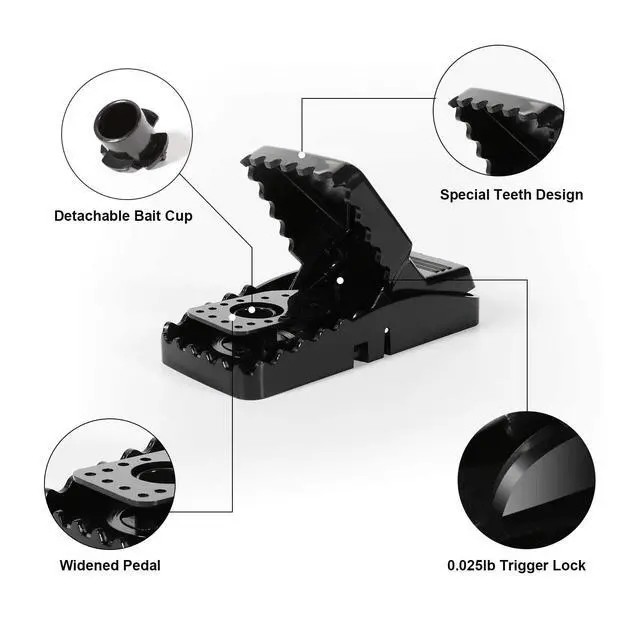 Only set a little sticky bait at the bottom of the bait cup, such as peanut butter, etc, and the bait shouldn't be higher than the top of the bait cup, don't let the rat get the bait easily, and increase the probability of catching mice.