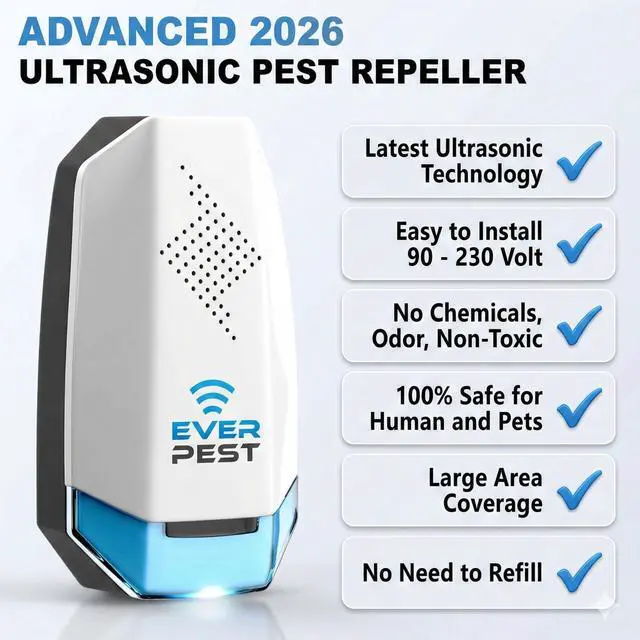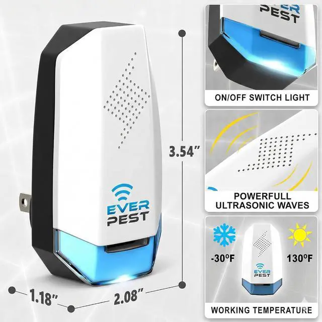 Powerful Ultrasonic Pest Control: Effectively repels roaches, bed bugs, mosquitoes, mice, rats, ants, flies, spiders, and more using safe ultrasonic waves.