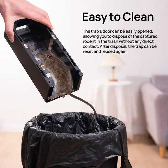 This rat trap is designed for ultimate hygiene. Simply open the lid and pour the captured rodent directly into the trash—no need to touch the animal, ensuring a clean, safe experience.