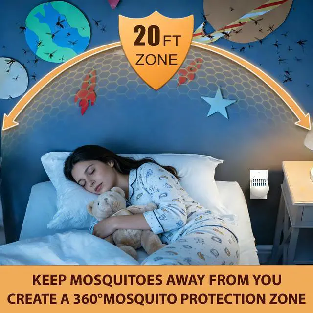 • EFFECTIVE MOSQUITO PROTECTION: Our Indoor Mosquito Repeller creates a 20-foot mosquito protection zone. Keeps mosquitoes away from you, convenient and efficient. Plug and play to create an anti mosquito area, sleep soundly without mosquito disturbance.