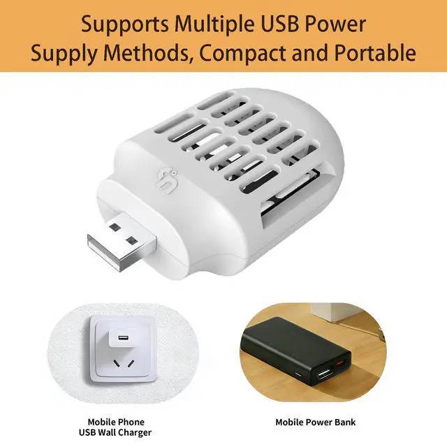 • USB POWERED AND PORTABLE: This electric mosquito repeller supports USB powered, can be charged by universal power bank and USB wall charger. It has a compact size, which makes it easy to carry. Perfect for Home, Living Room, Bedroom, Office, Kitchen, Warehouse, Hotel, Camping and Travel.