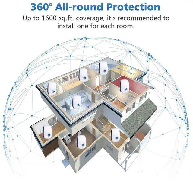 4. Ultrasonic sound can't penetrate furniture, cabinets or walls, keep ample space around the area where it's plugged in. To increase the effect, you should use several devices at the warehouse or several rooms.