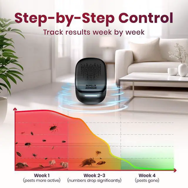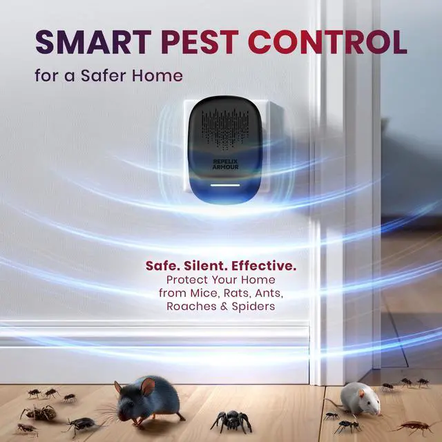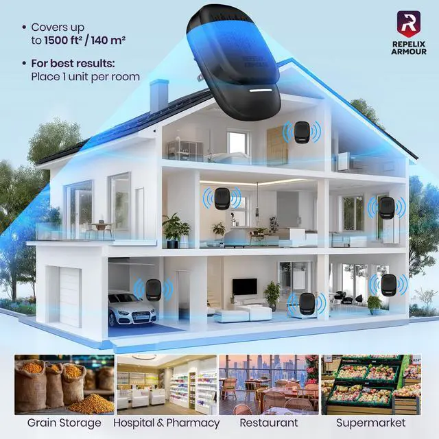INTERIOR PROTECTION: Each device covers 80140 m², offering rodent repellent indoor protection for bedrooms, kitchens, living rooms or basements. Works against ants, flies, cockroaches, spiders and mosquitoes. Use one device per room.