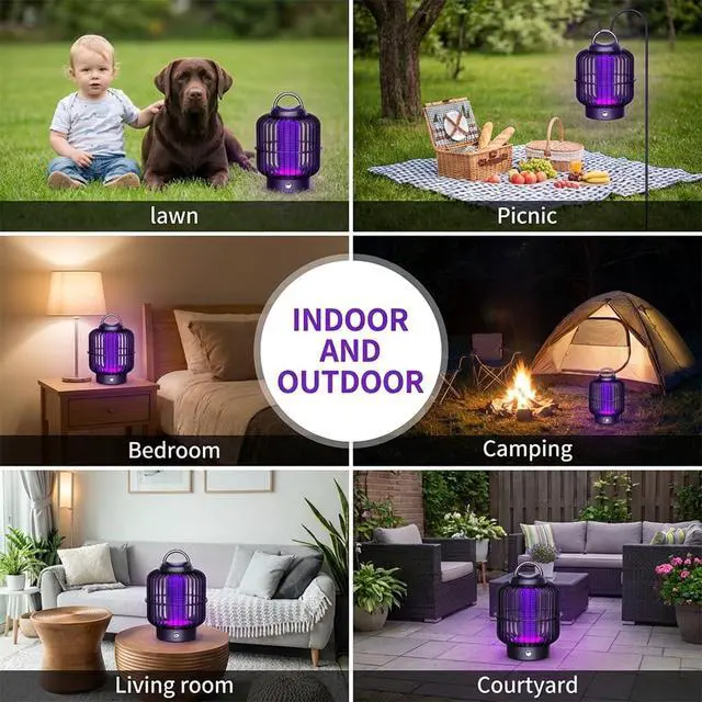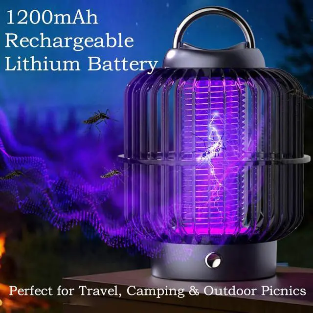 A: Our rechargeable bug zapper is built with a 1200mAh battery, which delivers up to 8 hours of continuous cordless operation after a full charge. It comes with a universal 5V USB charging cable, so you can easily recharge it via a laptop, power bank, car charger, or any standard USB-compatible power source, no bulky AC adapter required.