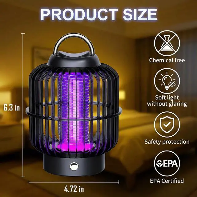 A: This mosquito zapper is equipped with a professional-grade 2200V high-voltage 360° grid, which delivers instant physical elimination when flying insects make contact. It effectively kills a wide range of common flying pests including mosquitoes, flies, and gnats. Unlike low-powered zappers that insects can simply pass through, our high-voltage grid ensures fast and efficient pest control.