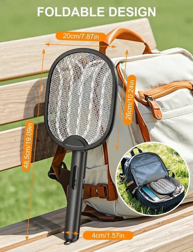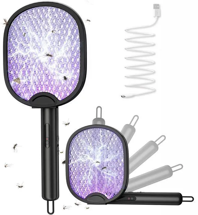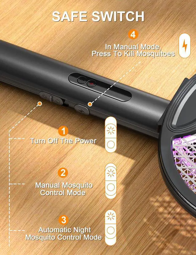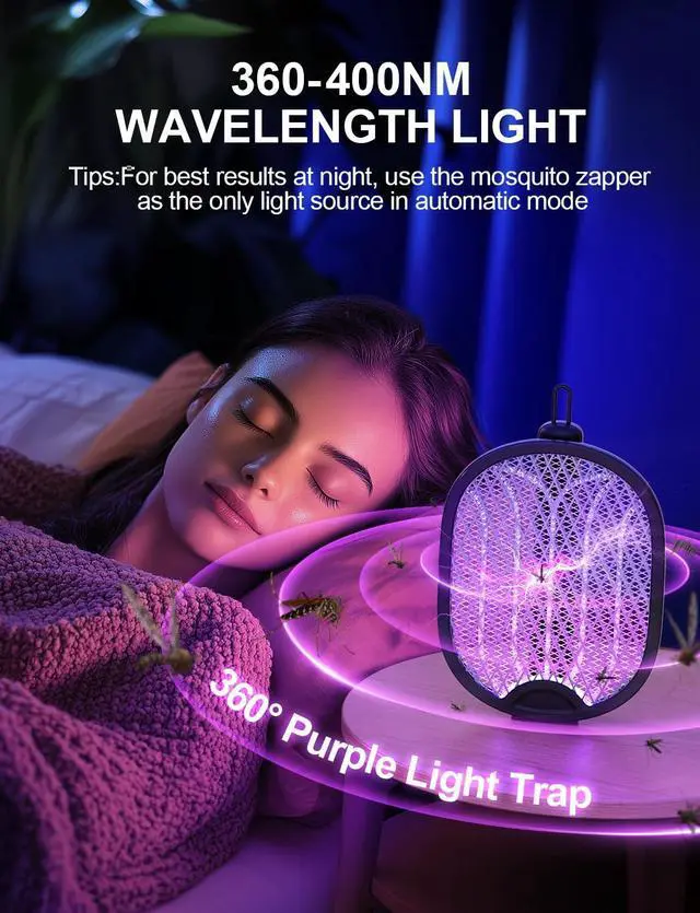 Dual Mode Design: In manual mode, you need to keep holding the lightning button, and the power will automatically cut off when released, making it more energy-saving and safer, suitable for precise mosquito elimination. In automatic mode, the 360400nm mosquito-attracting blue light effectively lures mosquitoes, fruit flies, and other small flying insects. It can be placed as an auxiliary Bug Zapper Racket, suitable for bedrooms, living rooms, and various other settings.