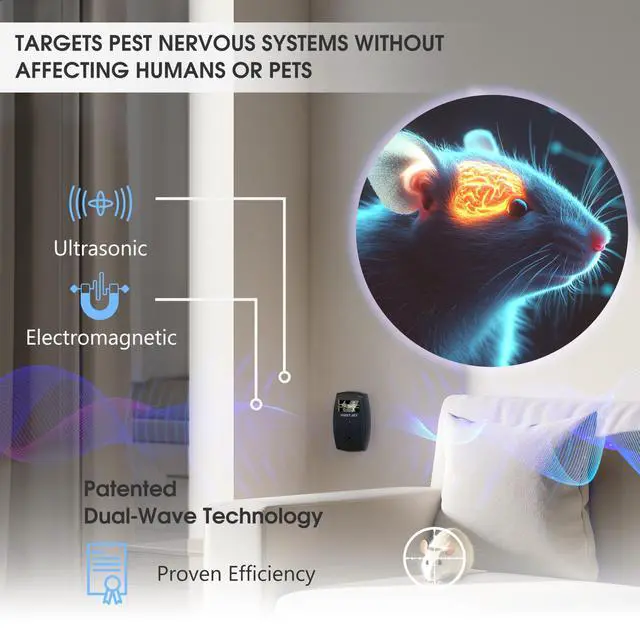 Advanced Ultrasonic Technology: Combines ultrasonic and electromagnetic waves designed to help reduce the presence of rodents and common household pests