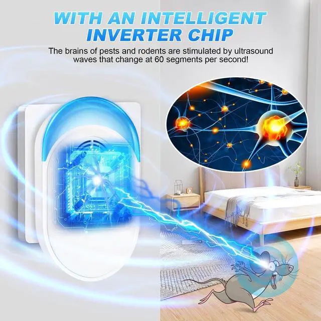 2026 Upgraded Ultrasonic Device Repeller: Newly upgraded micro-sensor frequency converter chip stimulates the pest's nervous system with a full range of ultrasonic waves from 22kHz-65kHz, causing extreme discomfort. 60 different ultrasonic sounds are emitted every second, ensuring that pests can't get used to the sound and stay out of your home.