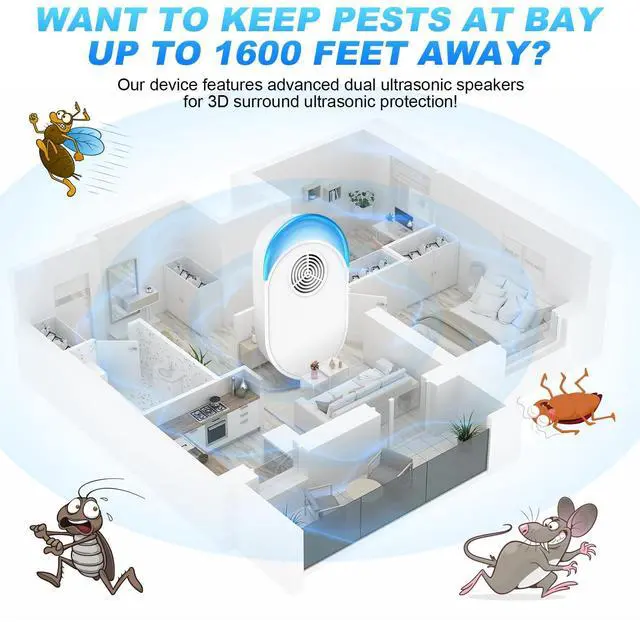Quiet Operation: The scientifically calibrated ultrasound pinpoints the hearing frequencies of pests and rodents so that humans and pets can't hear a thing. The upgraded repellent has a wider frequency range to effectively repel a wider variety of pests and rodents.