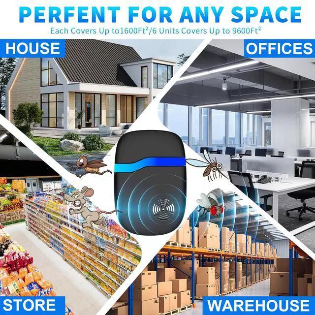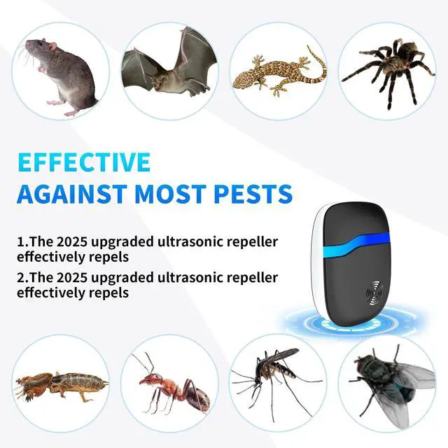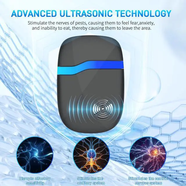 Upgraded Multi-Frequency Ultrasonic TechThis advanced ultrasonic pest control repeller uses upgraded intelligent multi-frequency conversion to emit powerful sonic waves that aggressively target the brain and nervous systems of pests. Effective against mice, rats, rodents, roaches, ants, spiders, mosquitoes, fleas, and bugs. Our ultrasonic rodent repellent leaves pests with nowhere to hide, providing comprehensive indoor pest control.