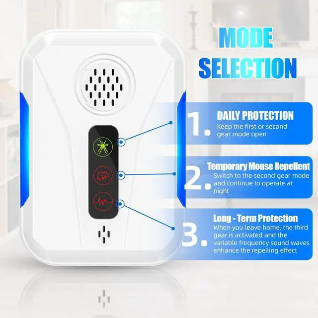 A5: The standard ultrasonic and pressure wave modes work best in open spaces. However, the dedicated Electromagnetic mode is specifically designed to travel along wiring within walls, helping to target pests like mice and rats hiding behind drywall, enhancing your home pest control.
