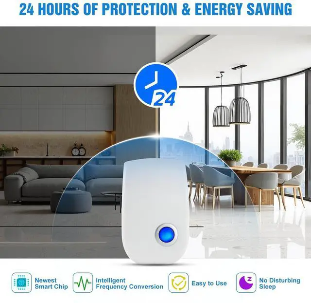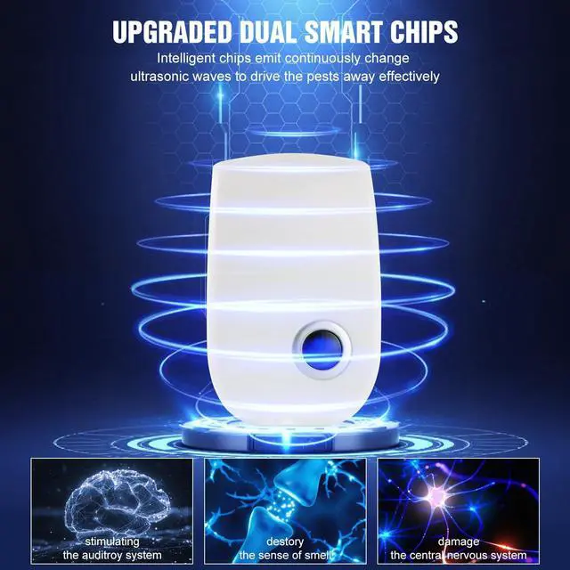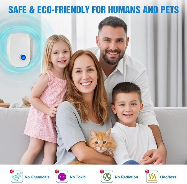 [Safe and Economical]: This electronic pest control repeller plug in is safe for human and pets like dogs and cats. Odorless, noiseless and no radiation. Rodent repellent uses sound waves to drive pests and rats away without killing them