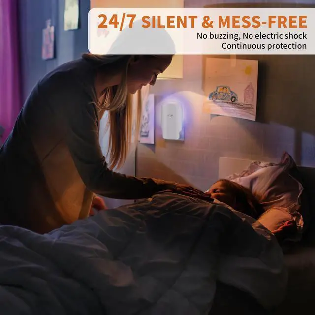 [AI-Powered Six Light] This plug in fly trap indoor uses upgraded six-light technology powered by an AI chip. It automatically adjusts the light frequency to attract flying insects more efficientlyboosting attraction rate by up to 30%. Perfect for gnats, mosquitoes, fruit flies, and house flies