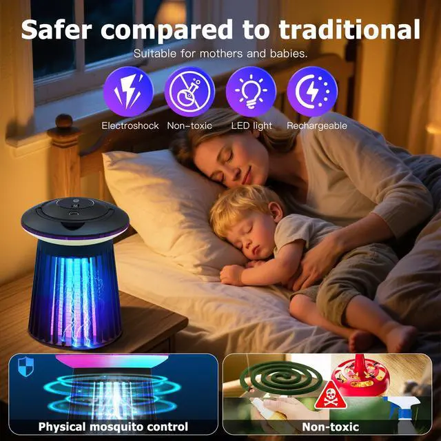 2026 Upgraded Mosquito Killer Lamp, 4200V Electric Bug Zapper for Indoor & Outdoor, Rechargeable LED Night Light - Safe for Baby & Family, Camping, Backyard, Terrace