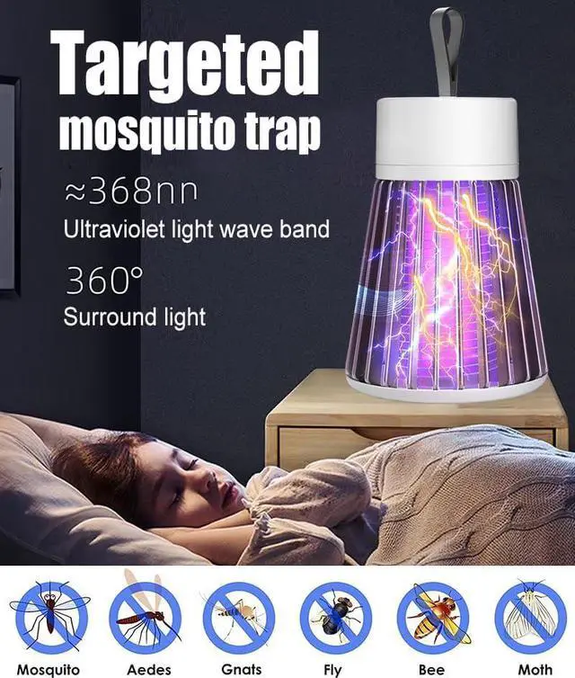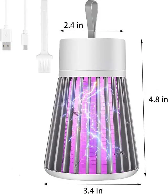 Bug Zapper Indoor Mosquito Zapper with Safety Grid USB Mosquito Trap Fly Zapper with Small Brush, Radiationless LED Mosquito Killer for Indoor, Home, Office, Car, Patio, Gray