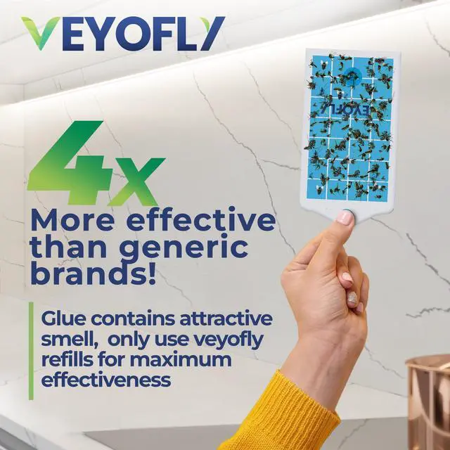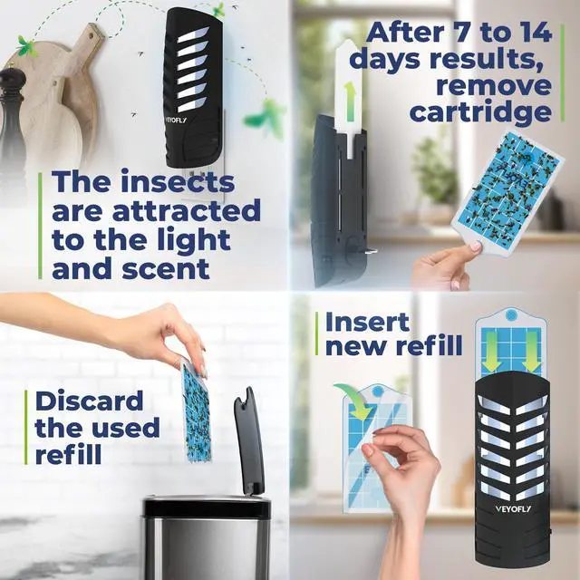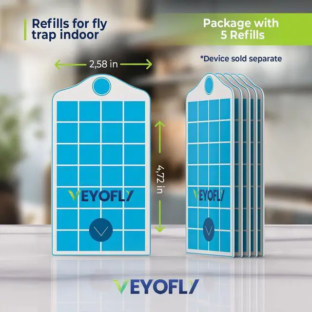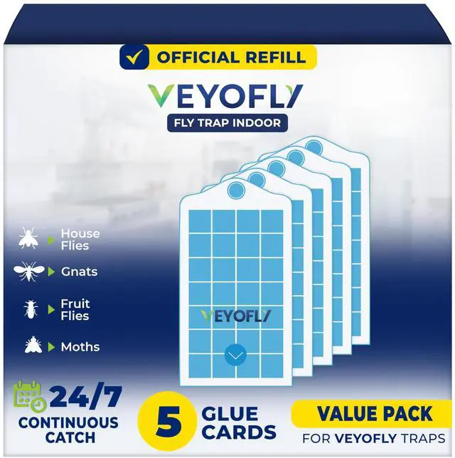 VEYOFLY Gnat Trap refills are best for fruit flies and gnats, with strong customer results. They also catch small flying insects, moths, and some mosquitoes. Less effective for large house flies, as the blue light mainly attracts smaller insects.
