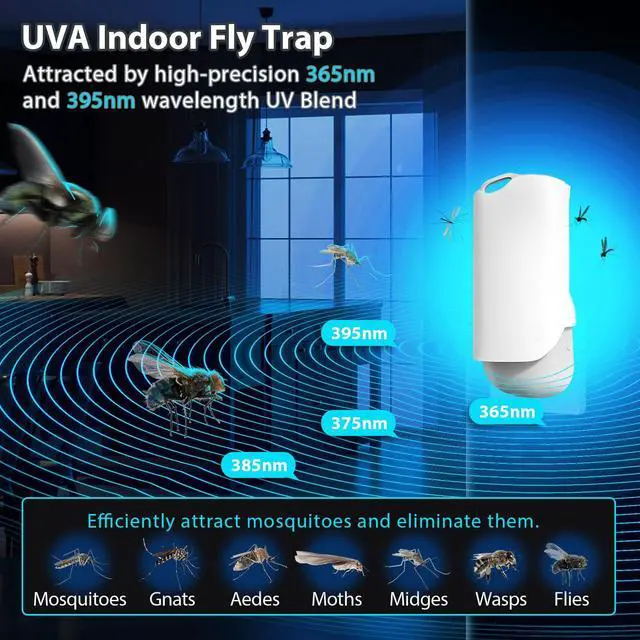 2025 upgrade fly traps featured with double wavelengths of 365-395 NM UV light and super strong adhesive sheet with special fragrance that starts working immediately to attract, trap, and kill flies, fruit flies, moths, gnats. making it impossible for insects to escape.No More Annoying Flying Insects!