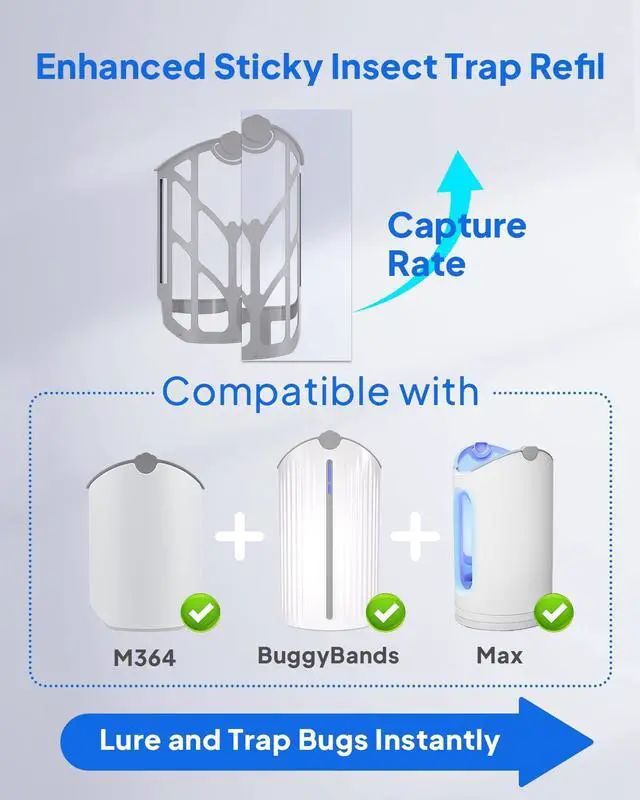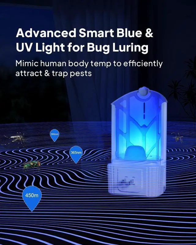 Uses mosquitoes' phototaxis: purple UV light attracts, sticky board traps instantly. Chemical-free, physically safe, fits home/outdoor