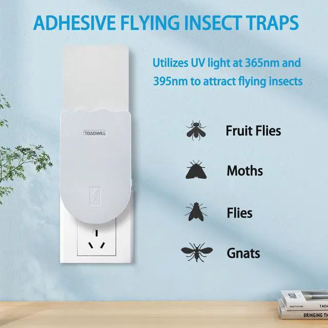 Attract and catch a variety of flying insects, such as mosquitoes, flies, fruit flies, gnats, moths, flying ants, etc.