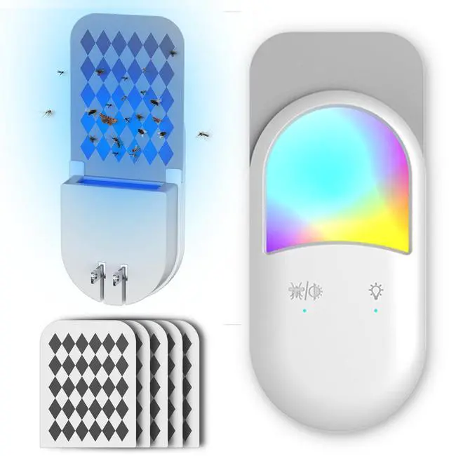 This indoor plug-in insect trap efficiently catches flies, fruit flies, moths and other small flying insects buzzing around your home. Powered by a non-toxic UV light, it attracts and captures pests without using harsh chemicals. The durable yet compact design fits discreetly into any outlet without taking up counter space. Once insects enter through the top, they are unable to escape the enclosed trap. An indicator light makes it easy to see when it's time to empty and restart the process of ridding your rooms of pesky intruders.