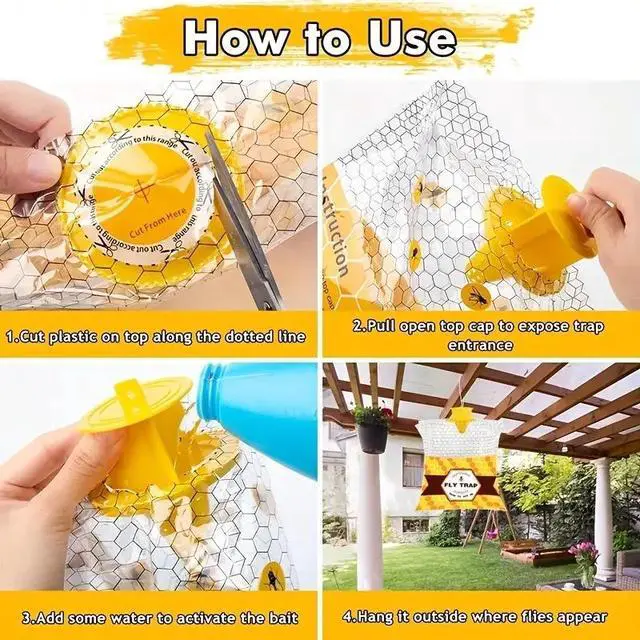 • Transparent bee fly trap, outdoor hanging foldable fly trap, fly capture bag