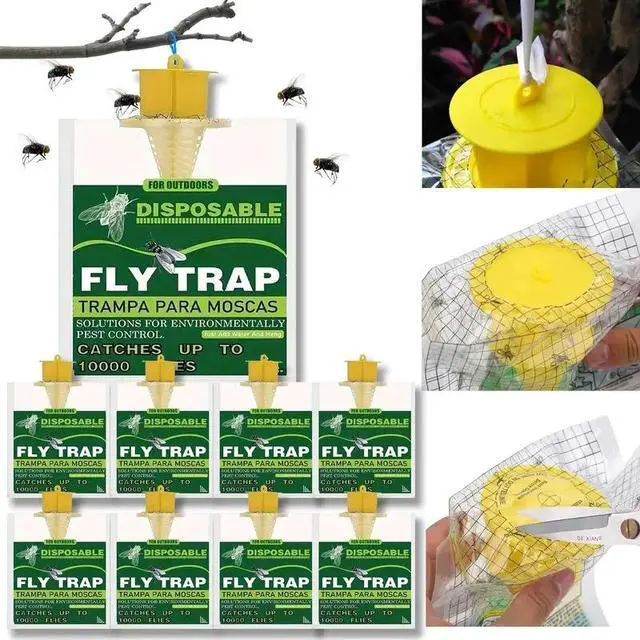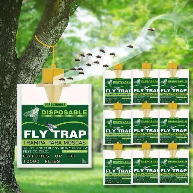 • Green and white fly trap, outdoor hanging foldable fly trap, fly capture bag