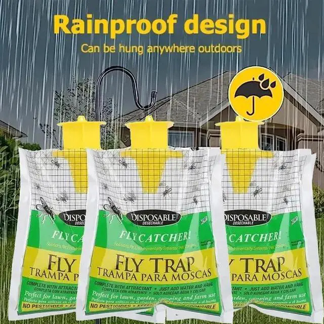 • Three fly trap bags, outdoor hanging foldable fly trap bags, fly capture bags