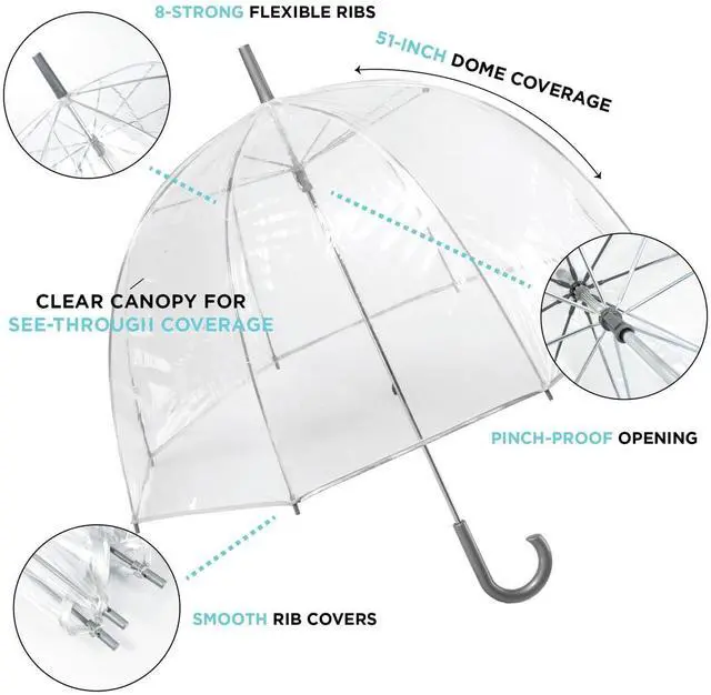 Totally see-through coverage that protects you from the elements! Great for navigating busy city streets, also a perfect accessory to pose with during a special event.