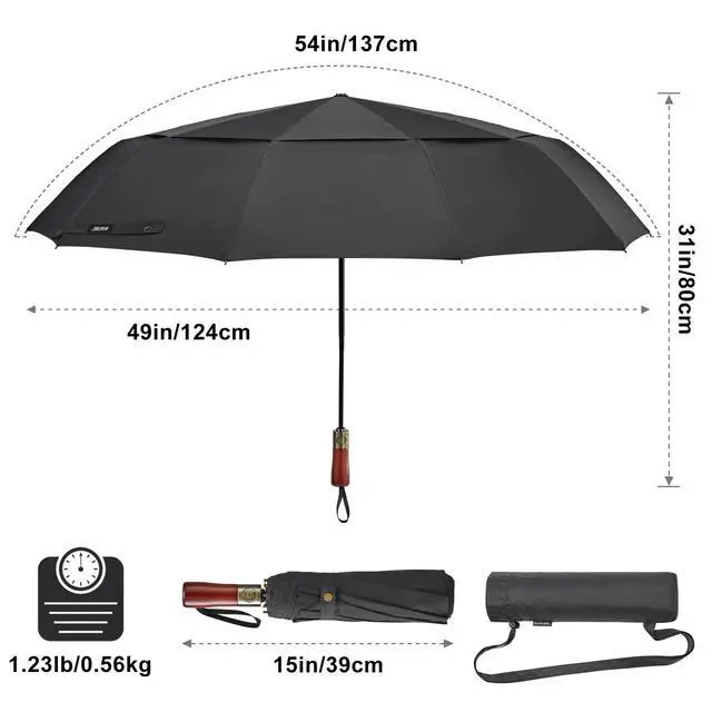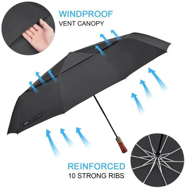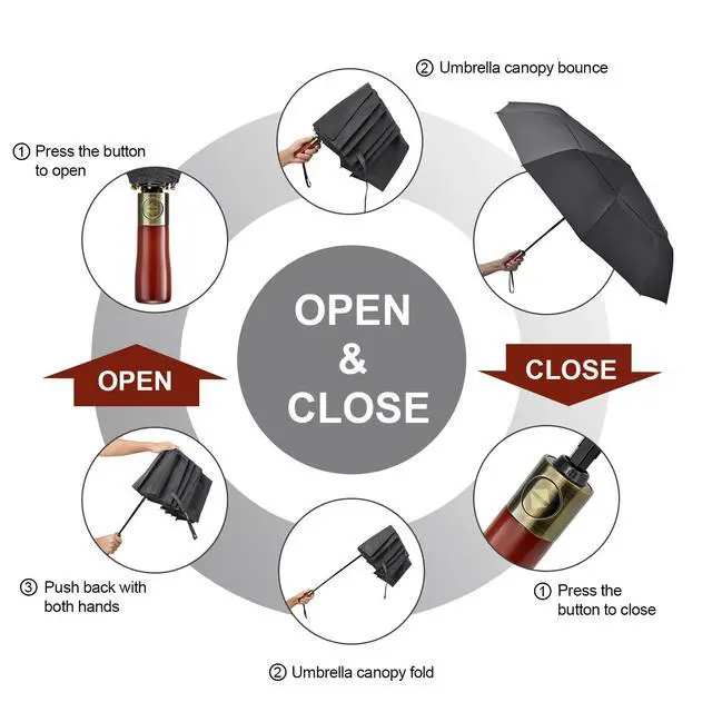 Open and close the umbrella at the press of a single button, which make it handy for quick entry into a car, building.