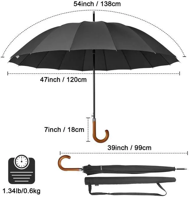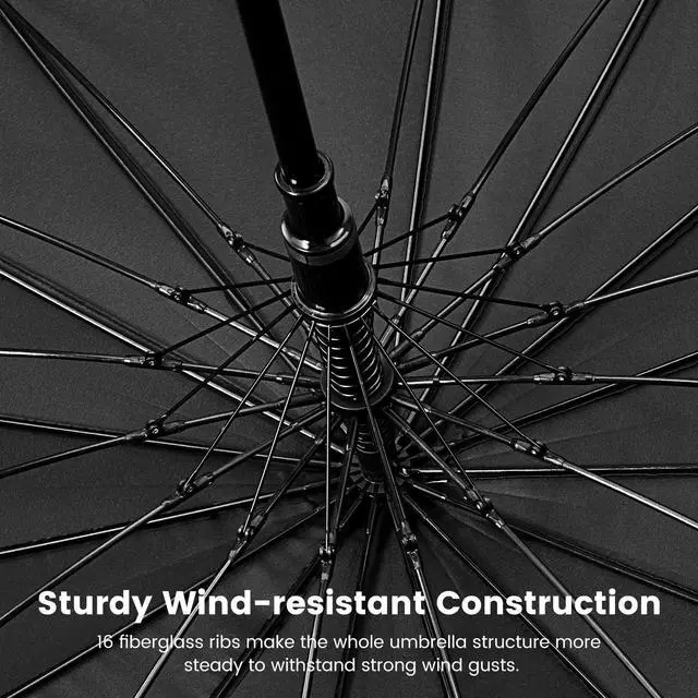 16 fiberglass ribs make the whole umbrella structure more steady to withstand strong wind gusts.