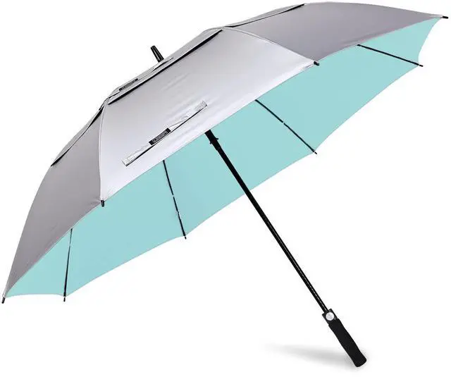 This UV golf umbrella reflects the light and blocks out 99% of UV rays. The silver-coated fabric offers UPF 50+ protection to you away from harmful rays.