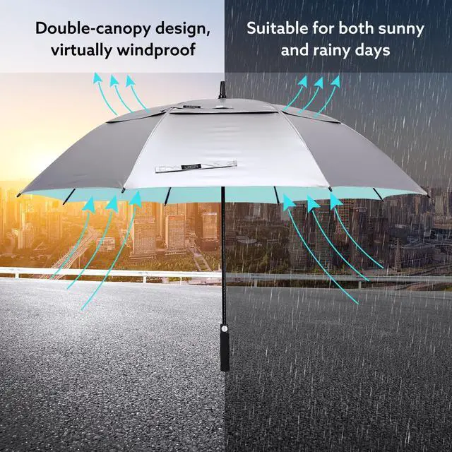 With a reinforced fiberglass frame and 8 ribs construction, this golf umbrella will not easily flip in a gust of wind and you will not be blown away in the harsh weather.